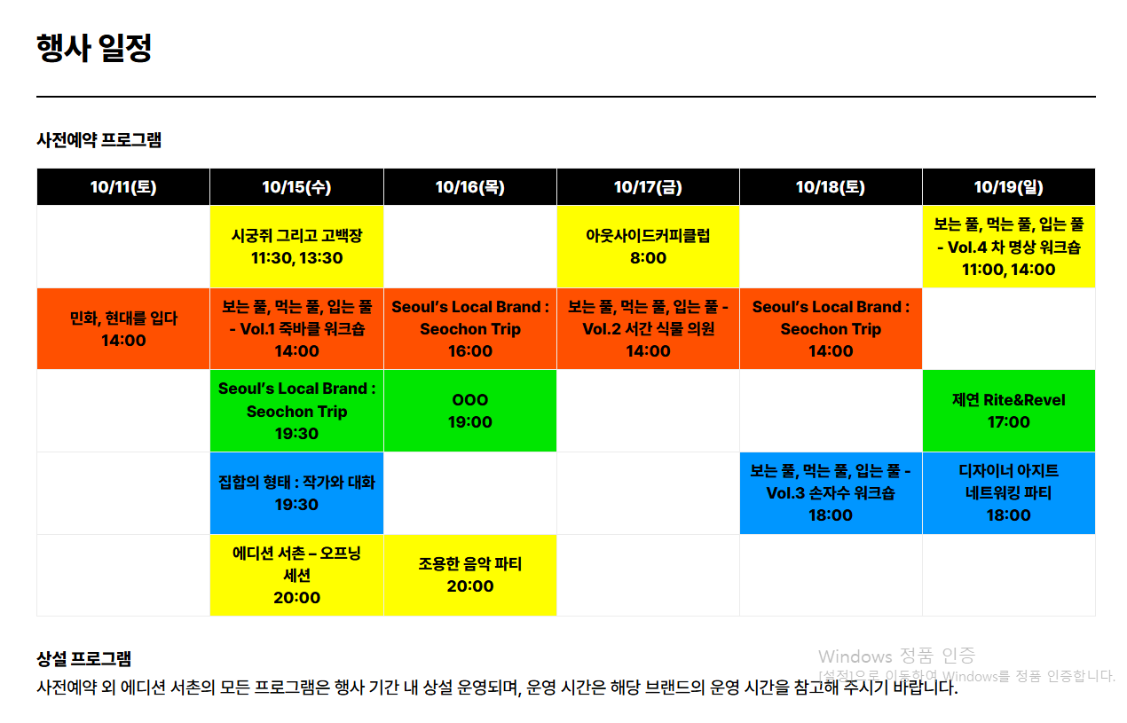 (프로그램 내용은 홈페이지 참조 http://editionseochon.com/)