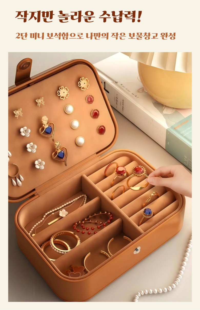 퓨어몰링 대용량 미니 보석함 악세사리 보관함 쥬얼리 반지 케이스 휴대용 2단