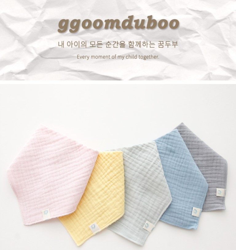 [꿈두부] 부드러운 삼중 거즈 유아 스카프빕 5종세트 아기 목수건_인스타그램