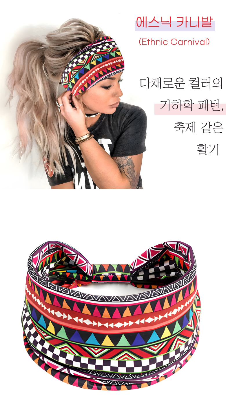 [춘짱] 페이즐리 보헤미안 에스닉 땀흡수 와이드밴드 스포츠 반다나 넓은 헤어밴드 러닝 등산 골프 테니스 요가 배드민턴 필라테스 멀티 패션밴드 + 번민공주 청결제