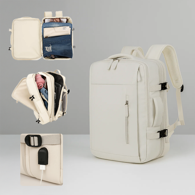 외부 USB 포트로 간편 충전 할 수 있는,넉넉한 내부 수납력,여행부터 일상에서 까지 사용하기 좋은 백팩,깔끔한 정리에 용이하고 편안한 착용감,단기여행 또는 장기여행 자주 다니시는 분에게 추천,캐리어 없이도 충분히 짐을 담을 수 있는 가방,충전을 자유롭게 하며 여행 할 수 있는,방수 기능이 있어 비오는 날에도 안심,기내 반입도 가능해서 좋은,무난한 두 가지 색상으로 취향 따라 고를 수 있는,캐리어처럼 용량이 커서 좋은 강조해 주세요!