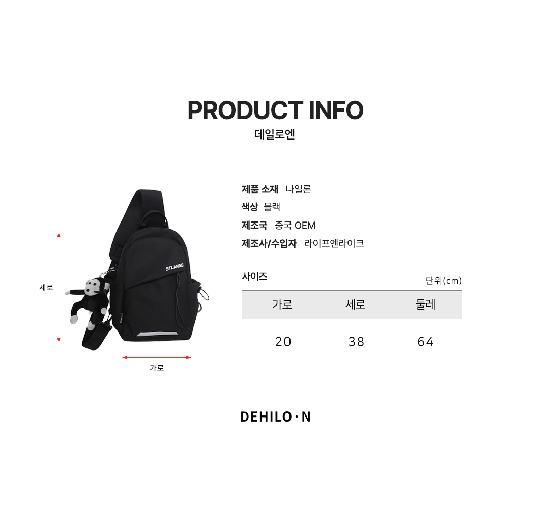 실용적인 옆 포켓으로 가볍게 수납하기 좋은,귀여운 키링이 포인트가 되어주는,내부와 외부 모두 실속 있는 수납공간으로 실용성이 높은,길이 조절 가능한 스트랩으로 어깨에 부담없이 편안하게 착용 할 수 있는,데일리 부터 출근용 또는 여행 보조가방으로 사용하기 좋은,가볍게 메고 다니기 좋은,넓은 스트랩 디자인으로 무게를 분산시켜 장시간 메도 편안한, 체형과 스타일에 맞게 길이를 조절 할 수 있는 강조해 주세요!