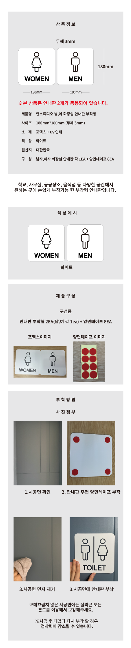 연스튜디오 안내판 부착형 18cm 남자화장실+여자화장실 화장실 안내판 1set 화이트