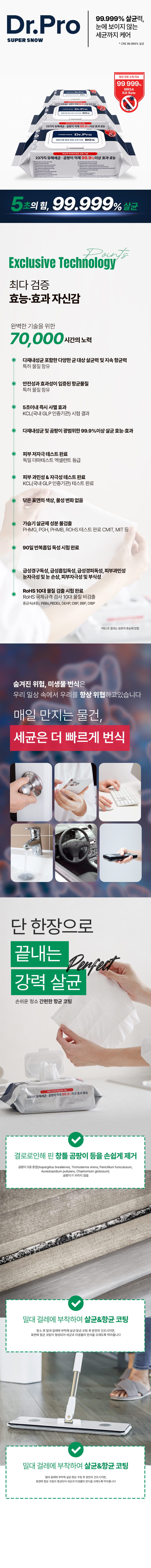 본 제품은 일반사용자를 위한 제품으로 살균이 필요한 표면 1m²에 살생물제품 2장을 사용하고 5분 후 깨끗이 닦아냅니다. 제품 사용시 황색포도상구균, 녹농균, 장내구균, 대장균, 프로테우스균, 레지오넬라균에 대해 99.99% 살균효과가 있음.