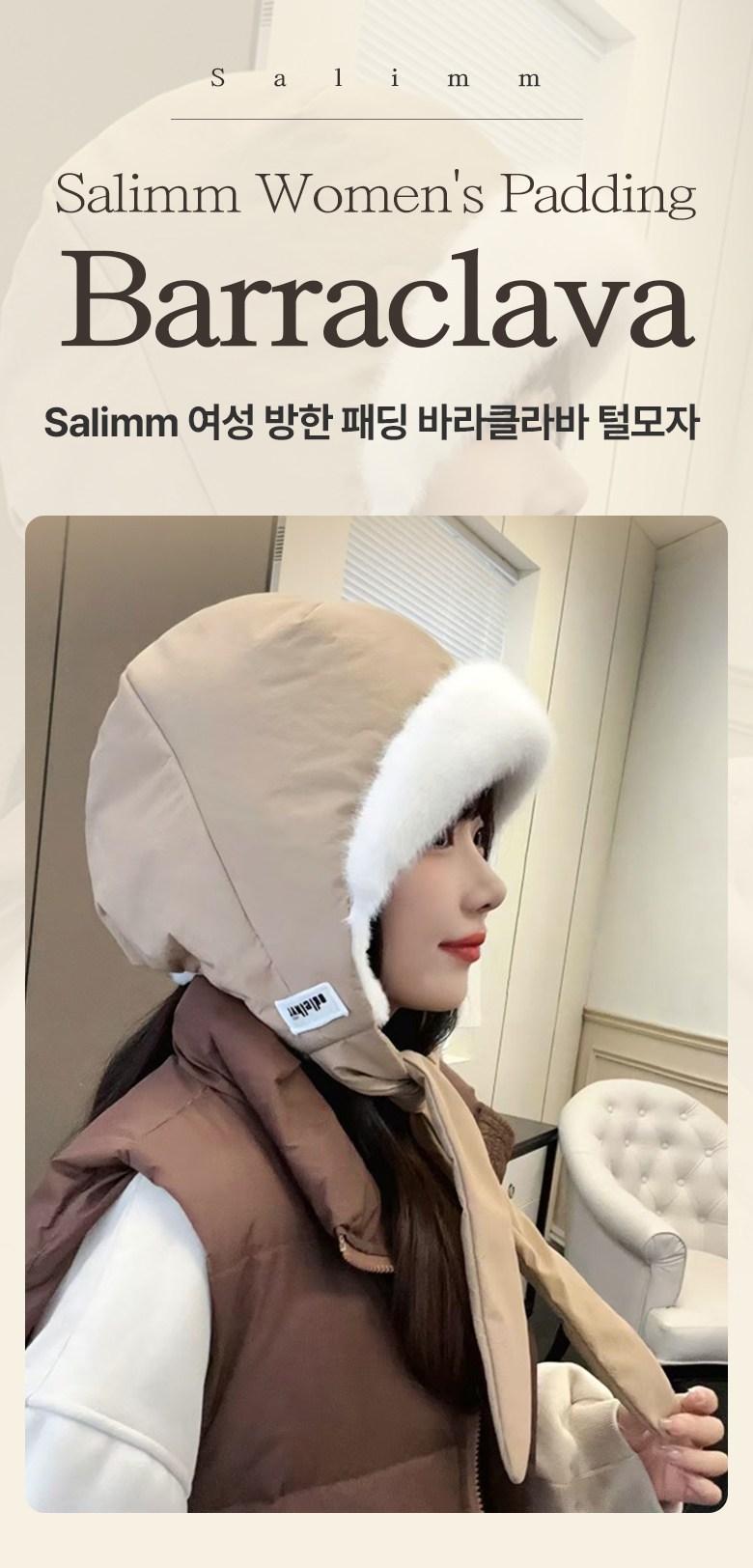 salimm 여성 따뜻한 방한 패딩 바라클라바 귀덮는 털모자