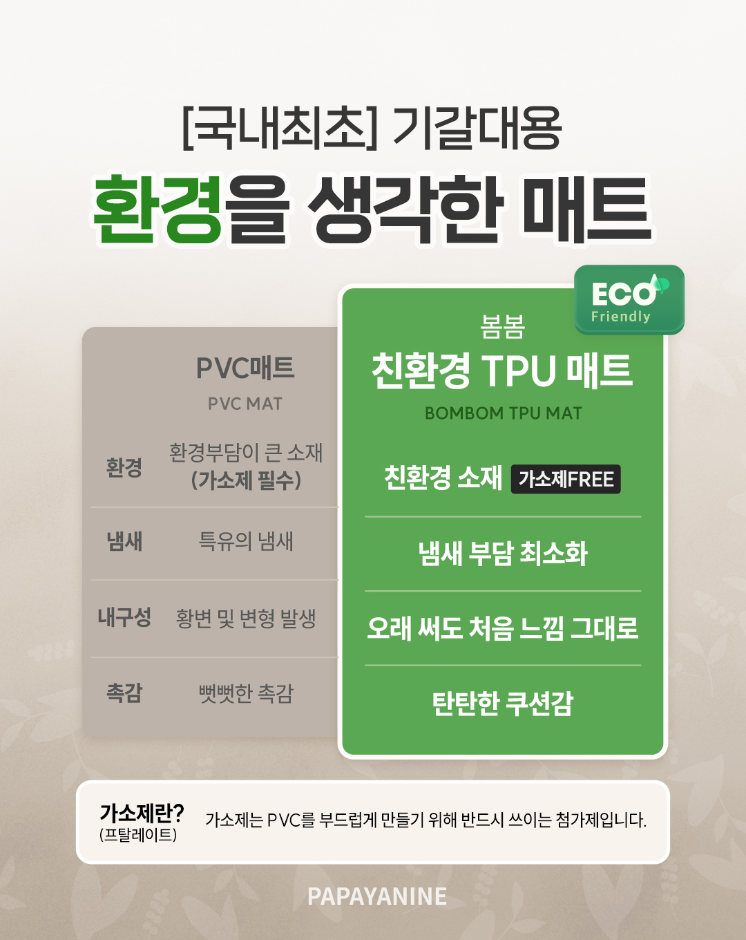 3️⃣ PVC 매트 특유의 화학 냄새 걱정을 줄인 고급 소재라는 점