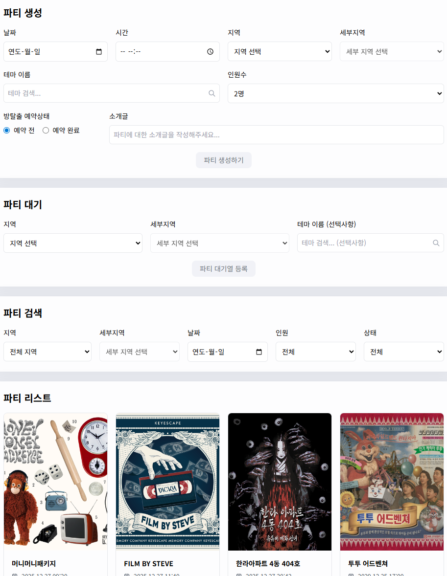방탈출 커뮤니티 사이트로써 중요한 기능들이 있는데요.