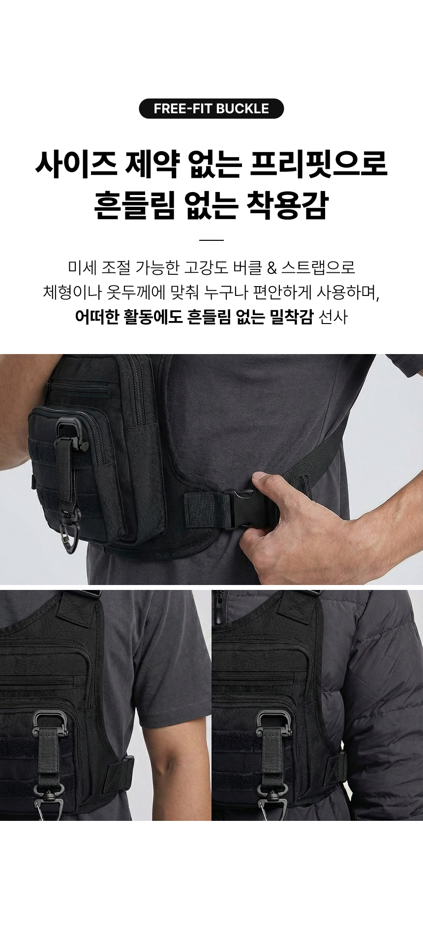 제품 착용 컷, 가방 커스텀 컷, 주머니 활용 컷(체계적인 수납)
