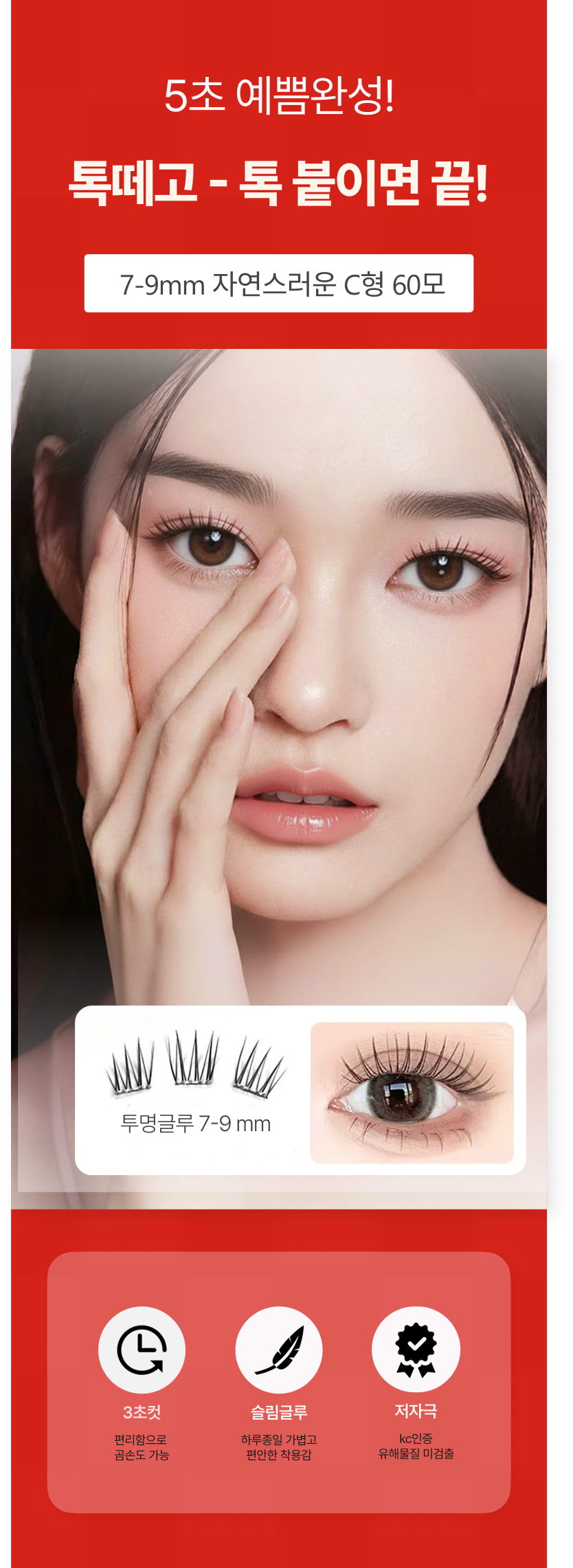 - 풀 없이도 붙는 간편한 글루가 붙어있는 속눈섭