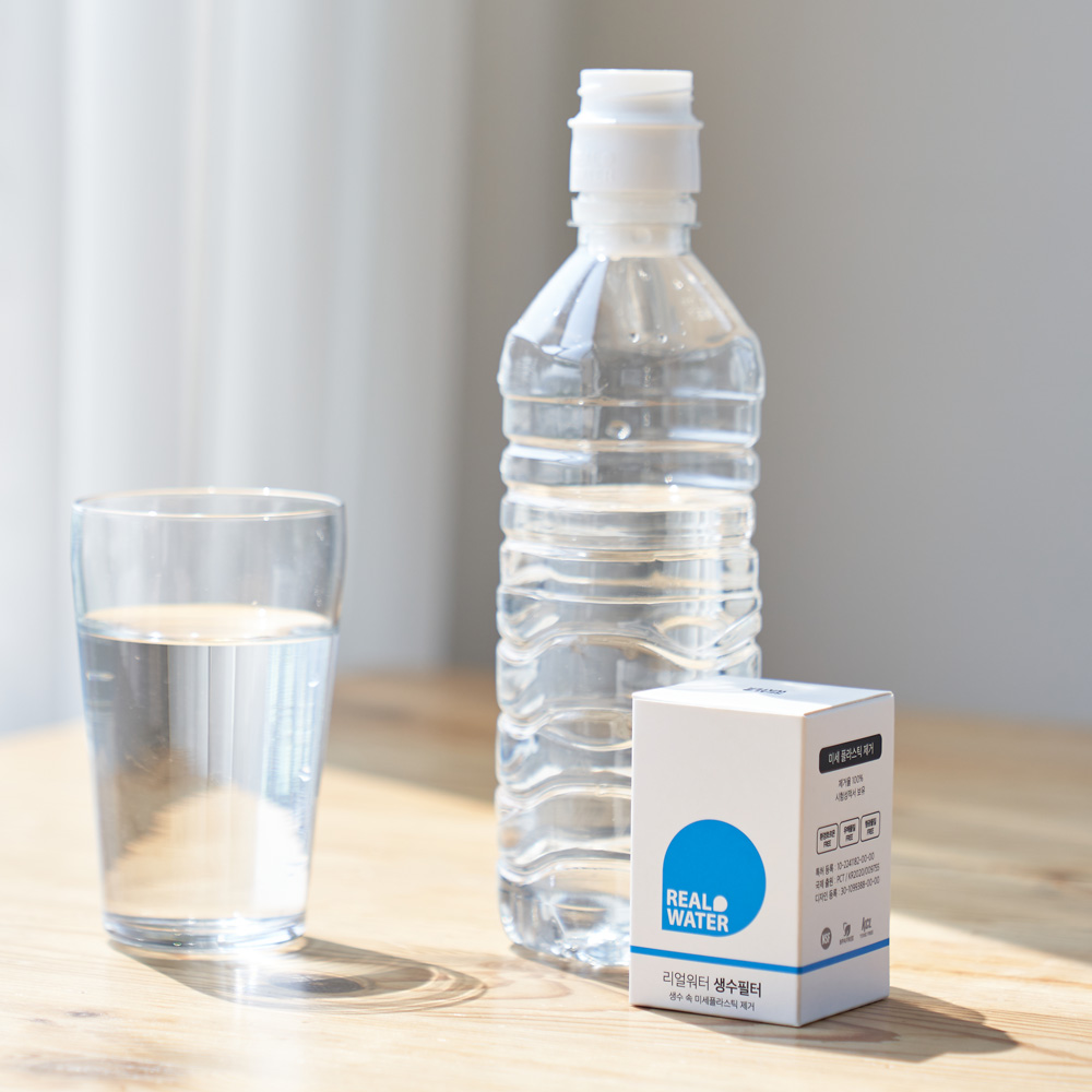 - 리얼워터 생수필터는 생수병 입구에 돌려끼워서 간단하게 사용 가능 (특허 보유)