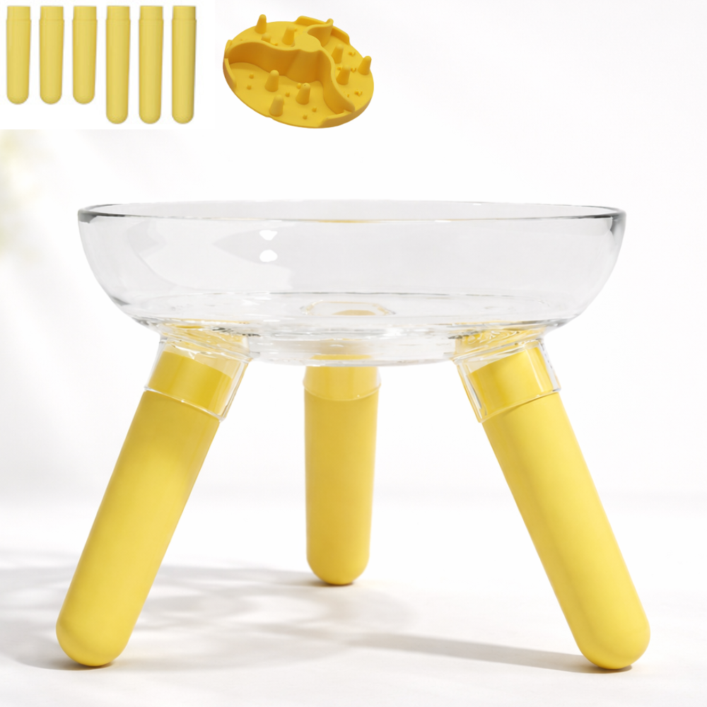 1명 모집[19,800원 상당] 더펫즈 높이조절 각도조절 급체방지 고양이 강아지 유리 밥그릇 식기, 옐로우, 1개