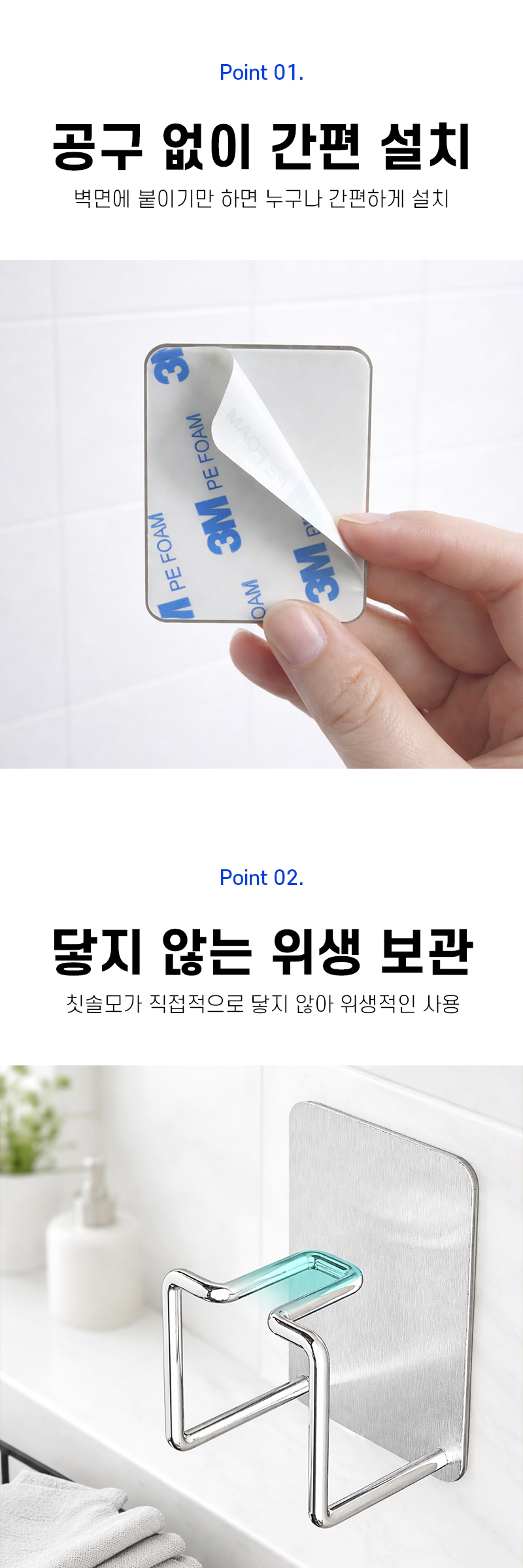뉴하 물기차단 스텐 접착식 무타공 욕실 칫솔걸이 거치대 세트