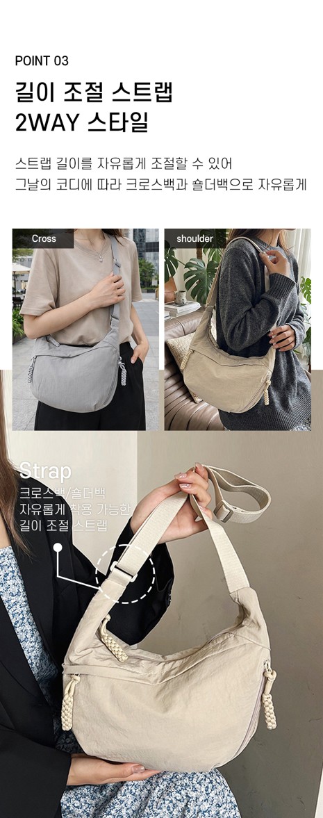 키워드: 반달 크로스백 /여성 크로스백 / 크로와상 크로스백/ 나일론 미니 크로스백