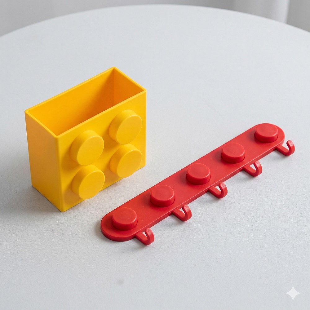 캠페인명 : 레고 수납함 제품명 : 레고 수납함 멀티 후크걸이 2종 세트 벽걸이 수납 정리, 1세트, 레드 후크+옐로우 수납