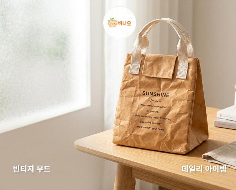 캠페인명 : 도시락가방 제품명 : 데일리 런치백 보온보냉 도시락 가방 빈티지 감성 푸드백
