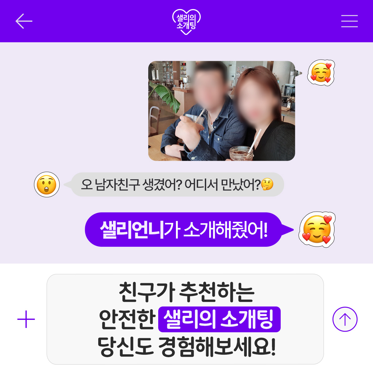 카카오톡으로 전담매니저가 1:1로 소개해주는 소개팅 서비스입니다 (결혼정보업 정식 등록업체)